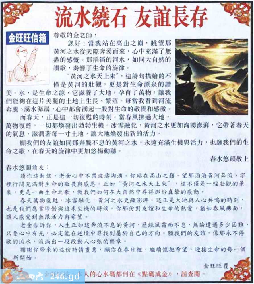 2025045期045期:金旺旺信箱彩民推荐→→《流水繞石 友誼長存》