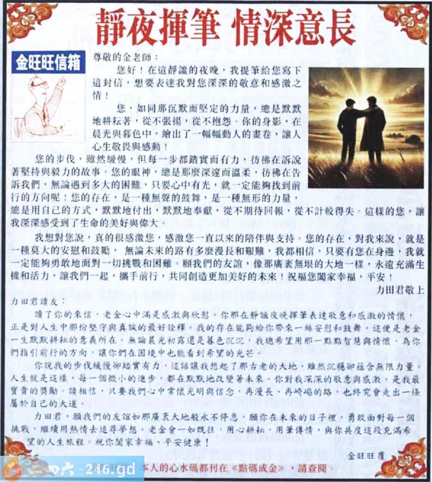 051期:金旺旺信箱彩民推荐→→《靜夜揮筆 情深意長》