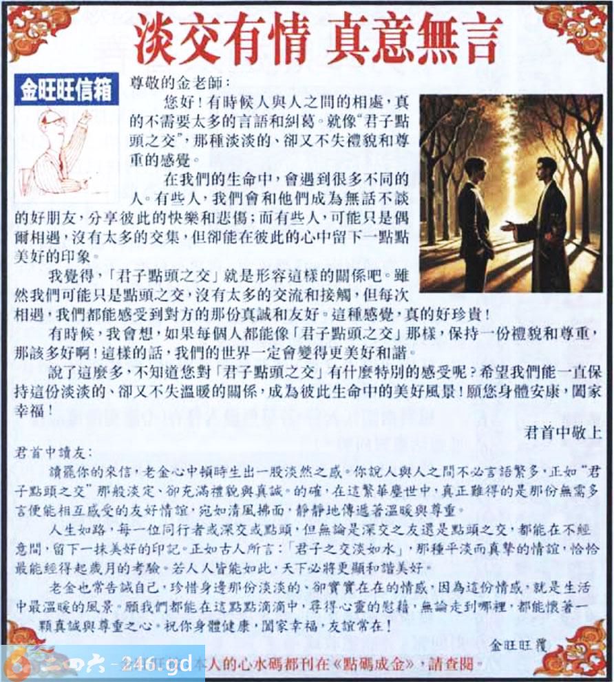 059期:金旺旺信箱彩民推荐→→《淡交有情 真意無言》