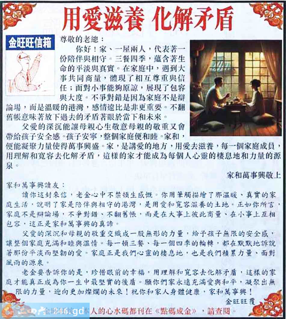 2025072期072期:金旺旺信箱彩民推荐→→《用愛滋養 化解矛盾》