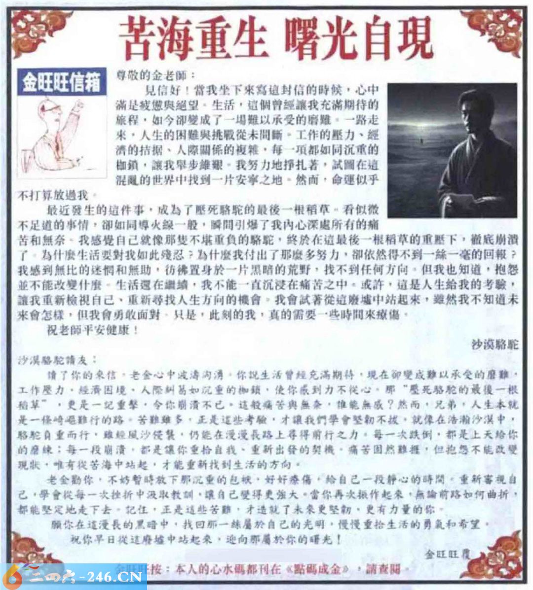 2025041期041期:金旺旺信箱彩民推荐→→《苦海重生 曙光自現》