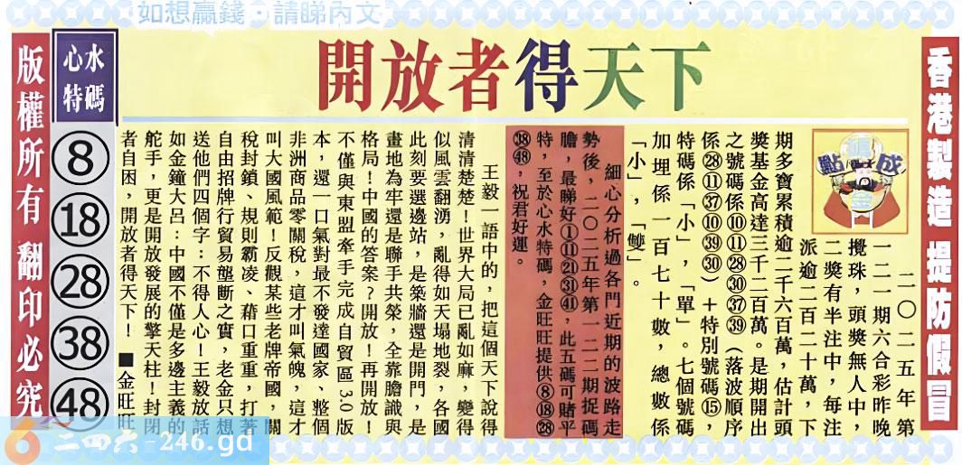 2025122期122期:金旺旺信箱彩民推荐→→《更新中》
