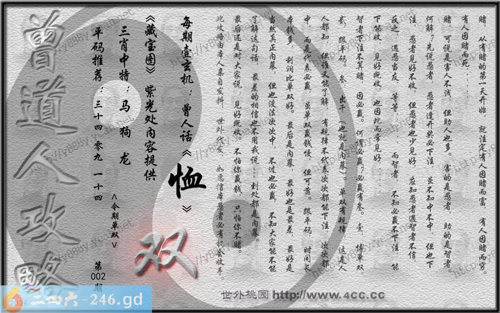 002期藏寶圖 新:行子不须愁夜泊 老:碧瓦参差竹树闲 禁:鸡 禁:1尾 玄機字:《恤》