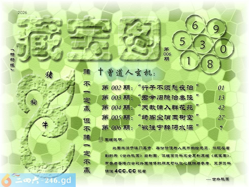006期藏寶圖 新:欲往宁辞沔水深 老:水鸡衔鱼来去飞 禁:猴 禁:4尾 玄機字:《样》