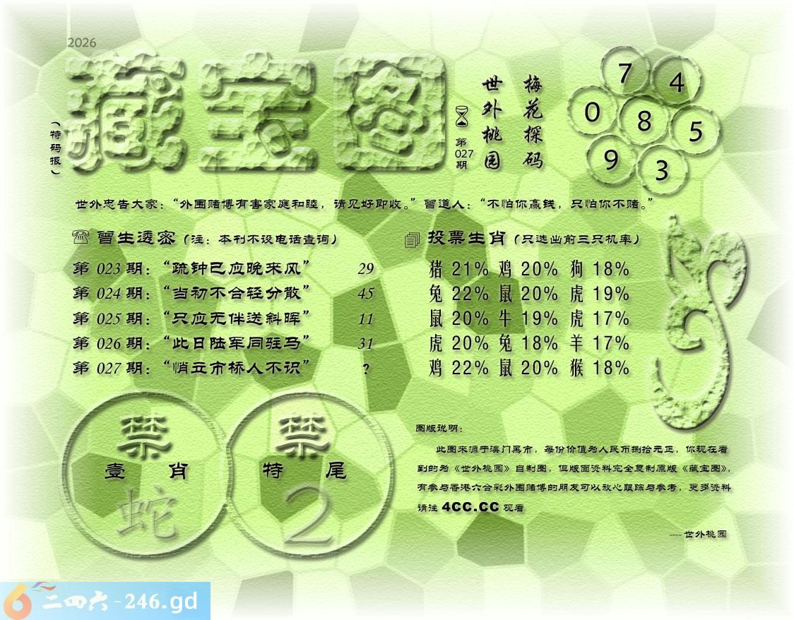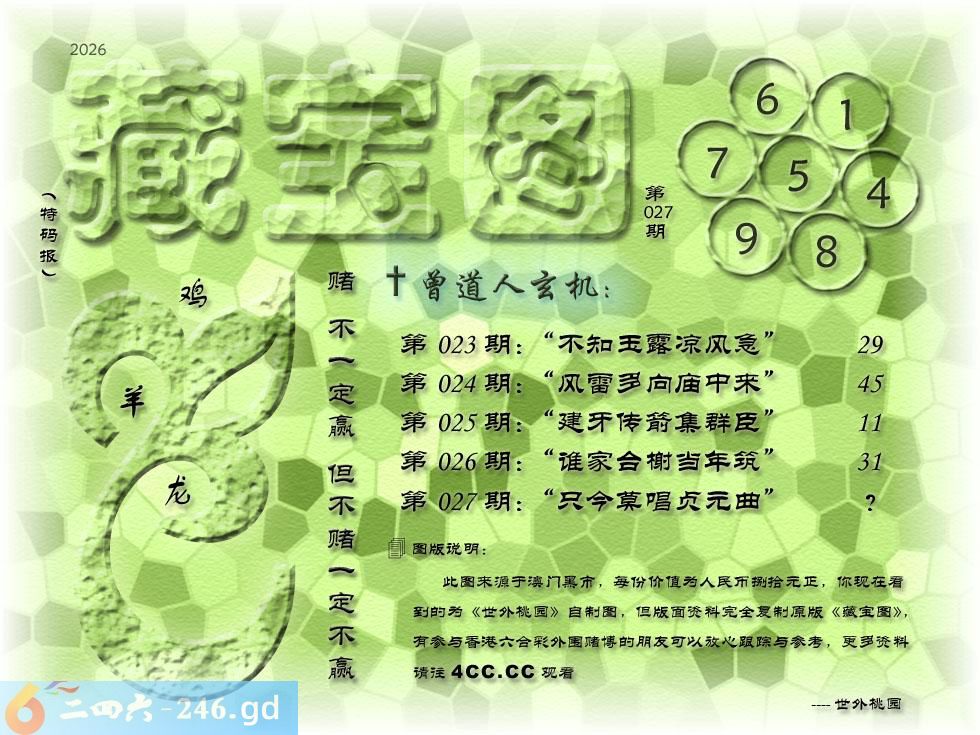 027期藏寶圖 新:只今莫唱贞元曲 老:悄立市桥人不识 禁:蛇禁:2尾玄機字:《莼》