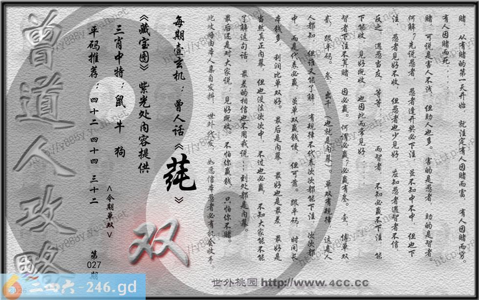 027期藏寶圖 新:只今莫唱贞元曲 老:悄立市桥人不识 禁:蛇 禁:2尾 玄機字:《莼》