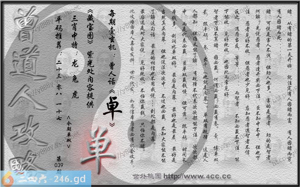 039期藏寶圖 新:片心惆怅清平世 老:风声雷动鸣金铁 禁:猴禁:2尾玄機字:《卓》